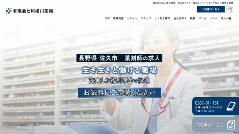 佐久市の店舗はJA長野厚生連佐久総合病院から徒歩約2分、諏訪市の2店舗も上諏訪駅から車で約4分とアクセスが良好です。門前医療機関や総合病院が近く、多様な診療科の処方箋に触れられるため、日々の業務そのものが学びの場となります。一人でのびのびと仕事ができる時間も多く、自分で考えながら患者様と接することで、独自の方法で地域の方々に寄り添えるやりがいがあります。20代から幅広い世代の方が在籍しており、地域医療に貢献しながら成長できる職場です。
