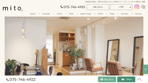 京都市中京区御所南のmito.では、美容室での仕上がりだけでなく、ご自宅での再現性まで大切にしています。毎日のリズムや朝の身支度にかけられる時間、よく着る服の色や質感といった日常のささやかなこだわりを少しだけ教えていただけると、より似合うスタイルづくりのヒントになります。なんとなくのイメージや言葉にしにくいご希望でも大歓迎ですので、気楽にお話しください。「手をかけなくても自然とかわいい」「忙しい日も心地よく過ごせる」そんな日常に寄り添うデザインをご提案しています。